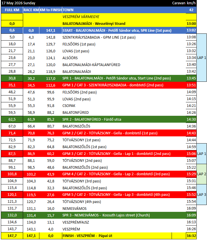 Finish: ~16:30 (CET), Veszprém, Pápai Road