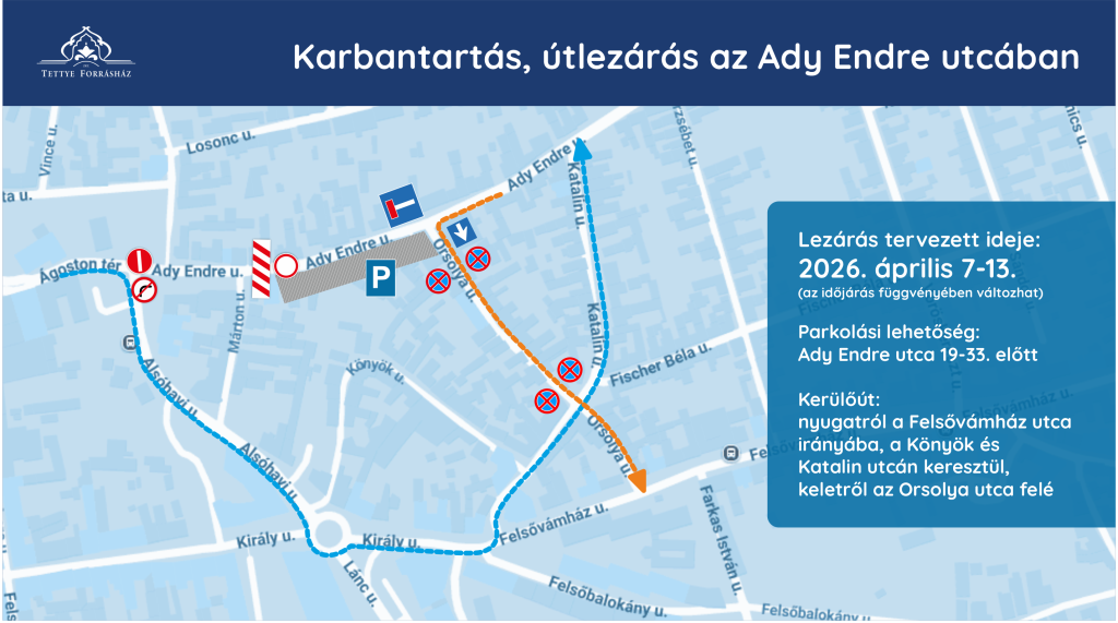 Kezdőlap / Hírek / Közérdekű / Útlezárás húsvét után az Ady Endre utcában: április 7-13