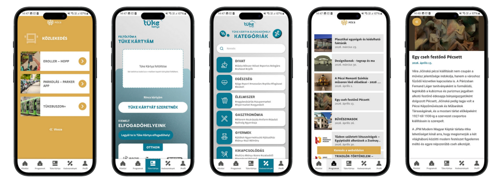 A PécsApp központi eleme a Digitális Tüke Kártya, amely több mint 400 helyen biztosít kedvezményeket a városban.