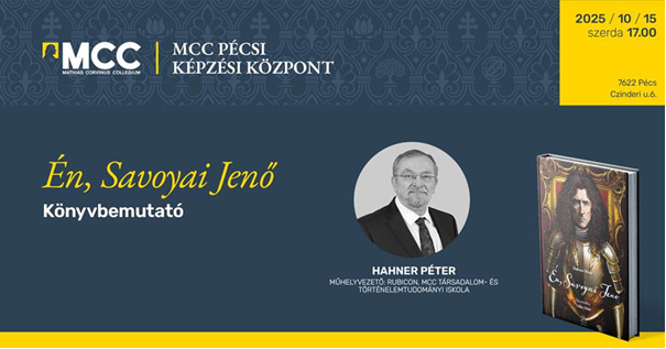 Rendkívül izgalmas könyvbemutatóval készülünk a pécsi MCC-ben, melyet Dr. Hahner Péter történész, a Rubicon Intézet Történettudományi műhelyének vezetője írt.