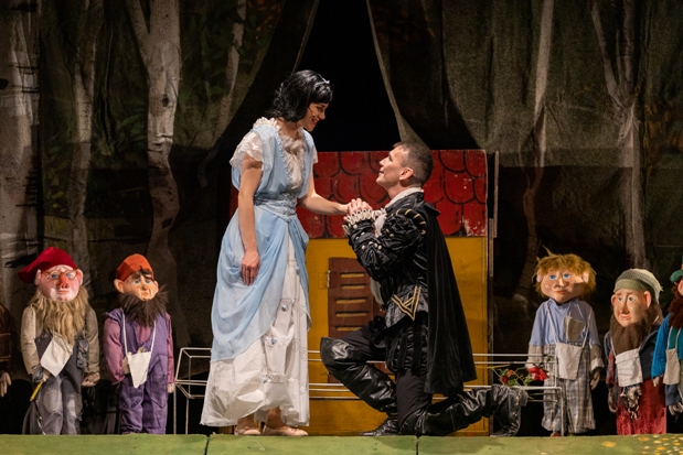 Mesejátékunkban a mostoha gonosz, a vadásznak puskája van, a törpék heten vannak, a hős királyfi egy kicsit ügyfogyott, de a csókja segít, ahogyan egy mesében illik.