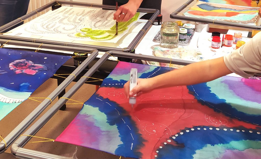A foglalkozást vezeti: Melegh Andrea, selyemfestő.
