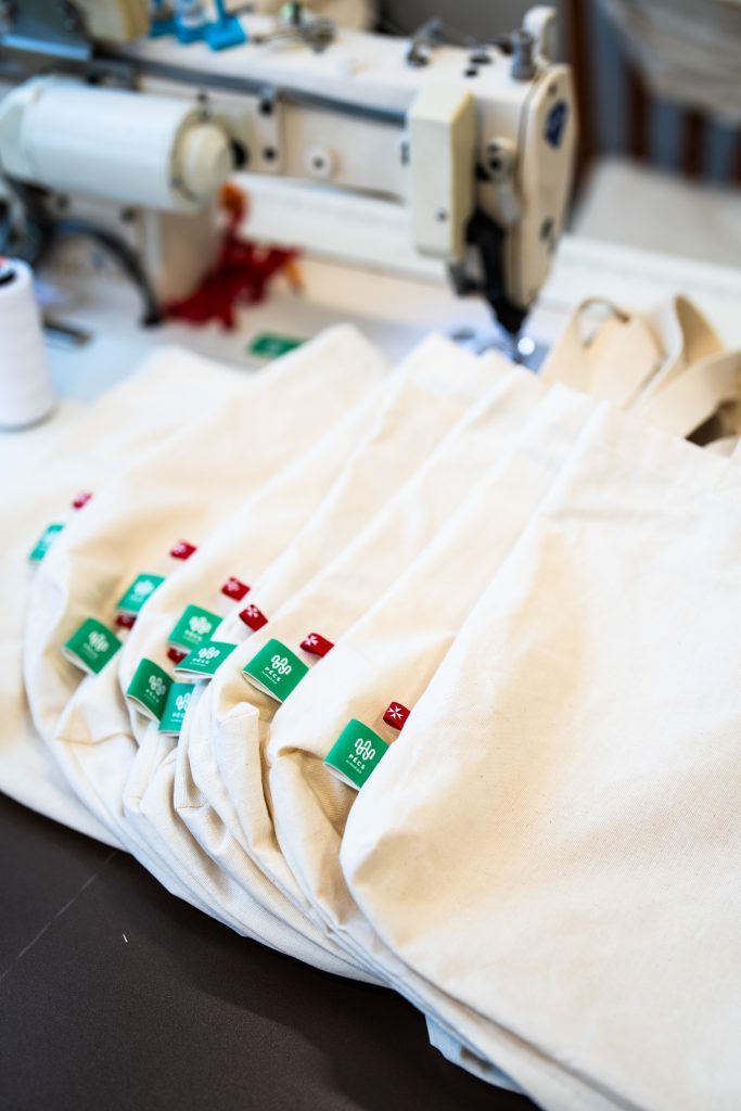 A Máltai Szeretszolgálat Műhelyében megváltozott munkaképességű hölgyek keze alól kerültek ki azok a ZöldÉrt vászontáskák és zöldség-gyümölcs zsákok, melyekkel a program ideje alatt találkozhat a Vásárcsarnokban.